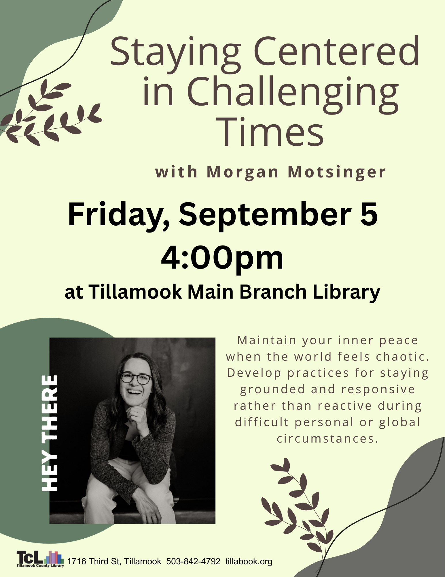 Staying Centered In Challenging Times with Morgan Motsinger at Tillamook Library