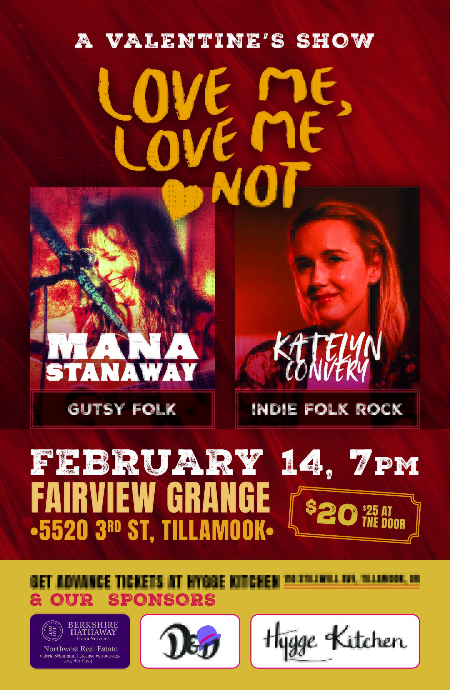 Love Me, Love Me Not Enjoy an evening of Gutsy Folk by Mana Stanaway and Indie Folk Rock by Katelyn Convery. Take your... MORE >
